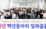 동구 박인석 기자2025. 12.01[AI 호남뉴스]광주 동구는 지난달 28일 ‘2025년 백년동아리 성과공유회’를 열고 올 한 해 어르신 여가 활동 성과를 공유했다고 밝혔다. 동구는 지난 2021년부터 백년동아리 사업을 운영하며 어르신들이 취미활동을 통해 일상에 활력을 찾고 사회적 관계를 확대할 수 있도록 다양한 여가 프로그램을 지원해왔다. 올해 백년동아리에는 13개 분야에 400명의 어르신이 참여했다. 동구는 동아리 분야 구성과 운영 방식을 조정해 프로그램의 밀도와 참여 만족도를 높이는 데 중점을 뒀다. 성과공유회에서는 미술·캘리그래피·뜨개 작품과 활동 ...