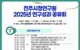 전주 박인석 기자2026. 01.26[AI 호남뉴스]전주시정연구원(원장 박미자)은 개원 2주년을 맞아 27, 28일 양일간 전주시 주요 정책 연구성과를 공유하는 ‘2025년 연구성과 공유회’를 개최한다고 26일 밝혔다. 전주시 소통협력센터 1층 커뮤니티 라운지에서 열리는 연구성과 공유회는 전주시 정책 연구 결과를 시민, 관계기관, 전문가들과 공유하고 향후 정책 방향을 논의하기 위해 마련됐다. 첫째 날인 27일에는 경제사회연구부와 문화관광연구부의 연구성과 발표가 진행된다. 경제사회연구부에서는 ▲전주시 인구정책 종합계획 수립 연구(’26~’30) ▲전주시 중장기 종...