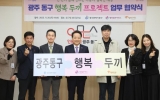 [AI 호남뉴스]광주 동구는 20일 행복나래㈜, 행복도시락 사회적협동조합과 ‘행복두끼 프로젝트’ 업무협약을 체결했다고 밝혔다. ‘행복두끼 프로젝트’는 아동 결식 해결을 위해 민관이 협력해 사회안전망을 구축하는 사회공헌 프로그램으로, 광주 동구는 지원이 필요한 아동을 발굴하고 기업에서는 결식 우려 아동 40명을 대상으로 1년 동안 1만 400여 식의 행복도시락을 제공할 예정이다. 동구는 이번 협약을 시작으로 2026년 1~2월 대상자를 선정해 3월부터 본격적으로 사업을 추진할 예정이며, 결식 우려 아동을 일시적으로 돕는 것에 그...
